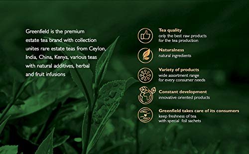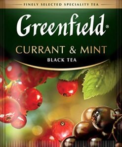 - Tea Greenfield Currant and Mint black long leaf 25 bags – wonderful tea with a taste of bright and warm summer! Currant bouquet brings great touches to the deep taste of black tea. The refined sweetness of black currant echoes the light sourness of red, and spicy mint completes this amazing composition, adding to the drink summer freshness and coolness.