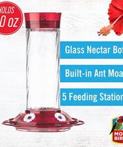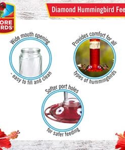 Details: The More Birds Diamond Hummingbird Feeder Features A Glass Nectar Bottle, A Red Top And Basin, And Seven Integrated Perch Feeding Stations. The Built In Ant Moat Stops Ants In Their Tracks, Helping Keep Nectar Fresh For Hungry Hummers. With A 30 Ounce Capacity, The Diamond Provides Plenty Of Nectar To Keep Hummingbirds Happy And Coming Back For More. The Wide Bottle Opening And Detachable Flat Base Make Filling And Cleaning A Breeze. Imported From USA.